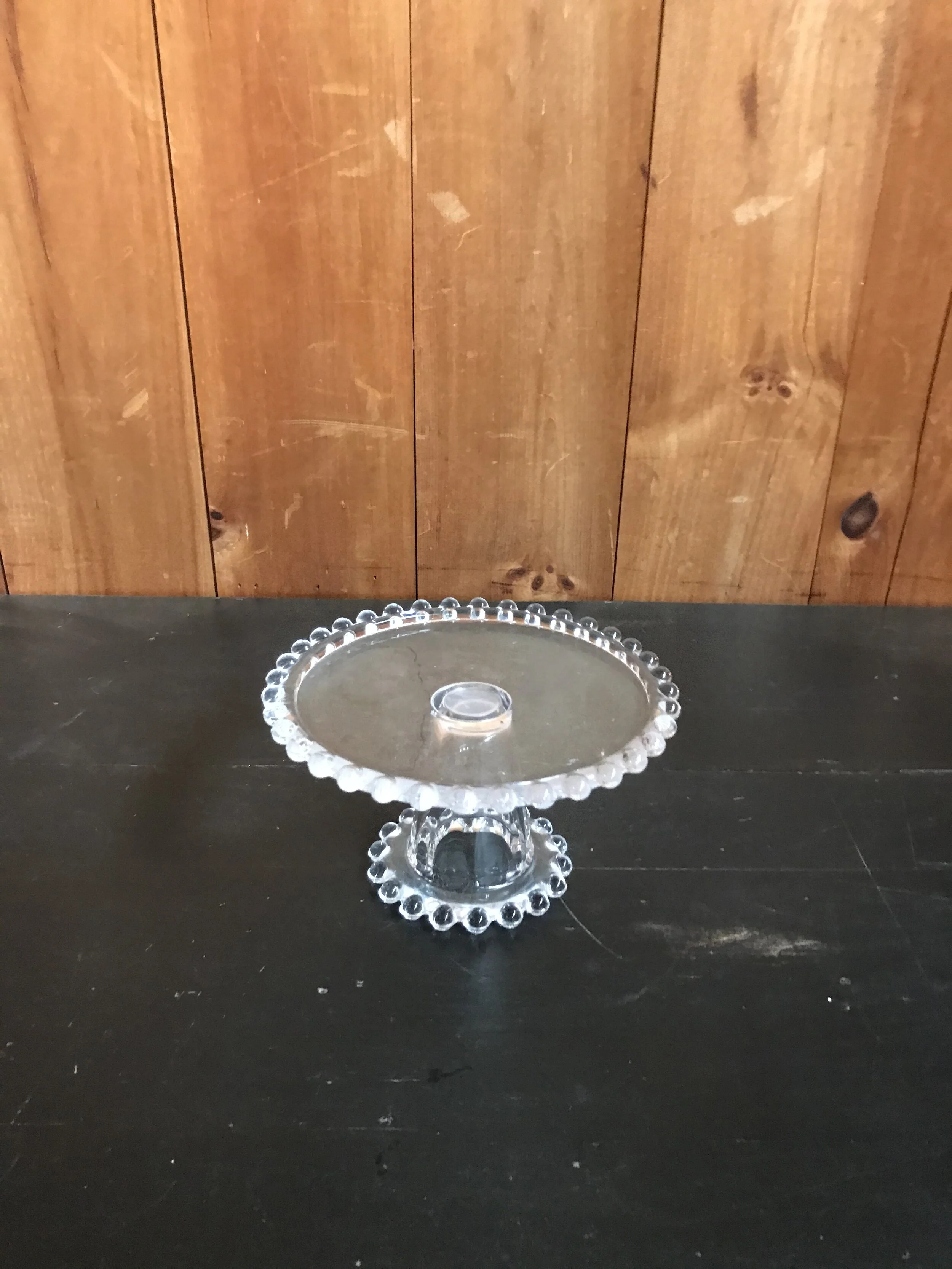 Food stands and tiers: six large silver three tier displays, assortment of cake stands (wood, glass and metal). If you need a specific size, please ask or plan to bring your own.